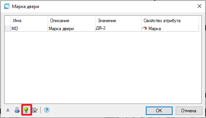 Окно Марка двери повторно можно вызвать двойным щелчком левой кнопки мышки на марке. Также из интересного функционала этого окна отметим функцию Подсветить исходный объект (рис. 10).