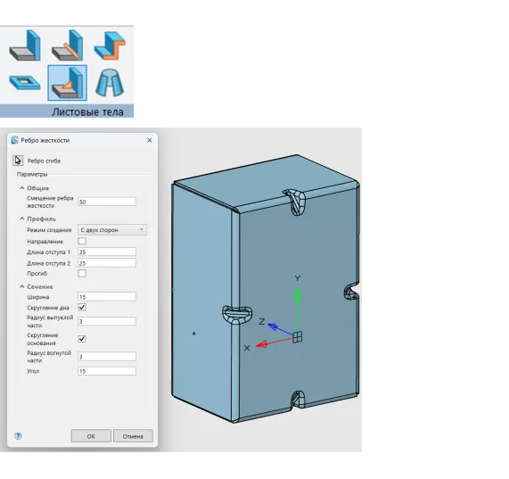 С помощью команды Ребро жесткости добавим на каждой стороне основания по ребру жесткости (рис. 16).