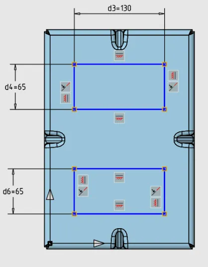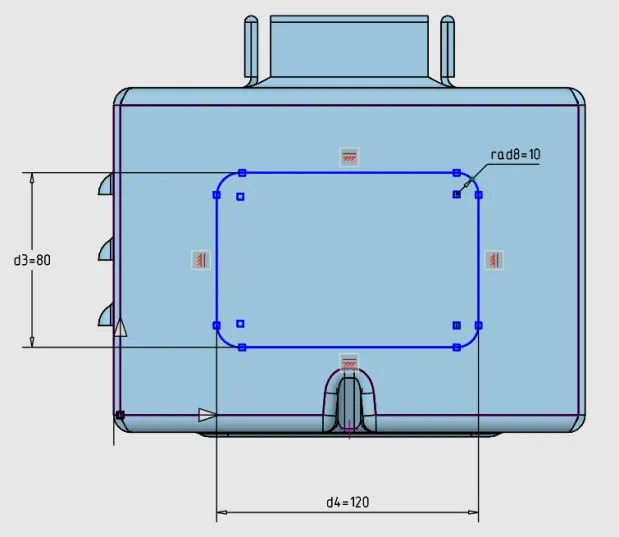 Создадим новый эскиз на одной из продольных стенок корпуса (рис. 19).