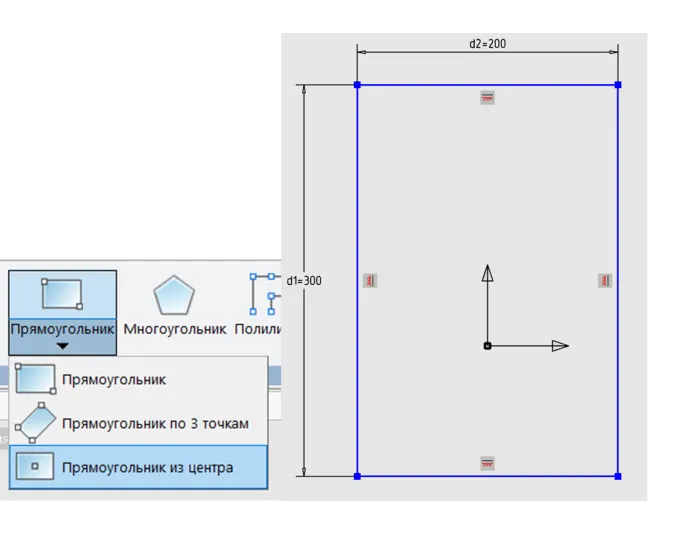 С помощью команды Прямоугольник из центра в группе Черчение создадим необходимый эскиз с привязкой к началу координат (рис. 4).