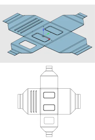В качестве фиксированной грани выберем основание корпуса. Как результат получаем развертку корпуса, из которой затем можно создать чертеж и раскрой (рис. 26).