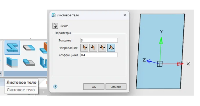 • Поле Толщина – содержит информацию о толщине листового тела.
