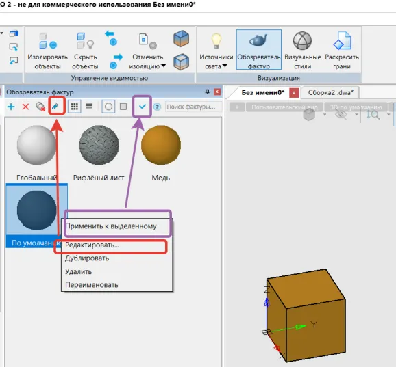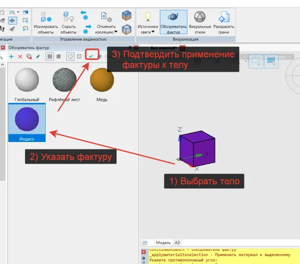 Если необходимо изменить отображение объекта и рабочей зоны, то важно понимать назначение двух ключевых настроек: обозревателя фактур и визуальных стилей.