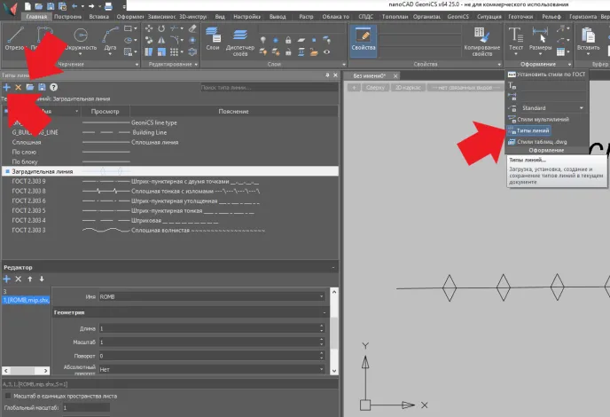 Полилинии добавляются стандартными средствами платформы через загрузку из файла *.lin или через Редактор (рис. 20).