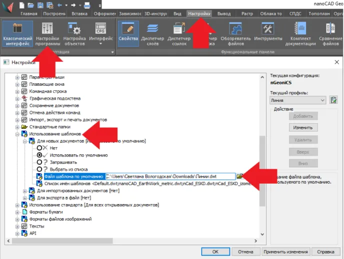После надо выбрать этот чертеж через использование шаблона в настройках (так как чертеж будет искаться по пути к файлу, важно его не переносить) (рис. 23).