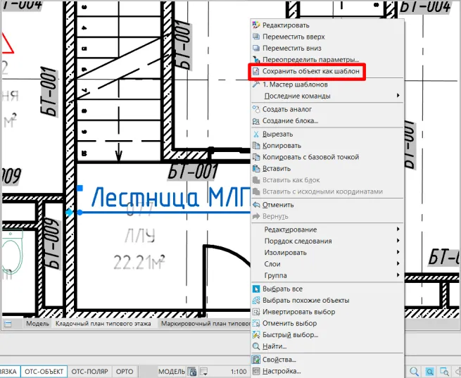 Если необходимо сохранить в базе данных наш шаблон выноски, то делаем следующие действия: щелкаем по выноске правой кнопкой мыши и выбираем в выпадающем списке пункт Сохранить объект как шаблон (рис. 18).