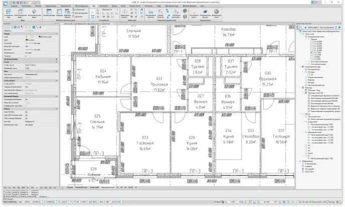 Данные для экспликации помещений, спецификации элементов заполнения проемов, а также ведомости стен и перегородок получались непосредственно из параметрических объектов, созданных в конфигурации «nanoCAD BIM Архитектура».