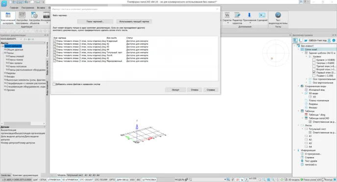 Средства для работы с комплектами документации являются инструментами Платформы nanoCAD.