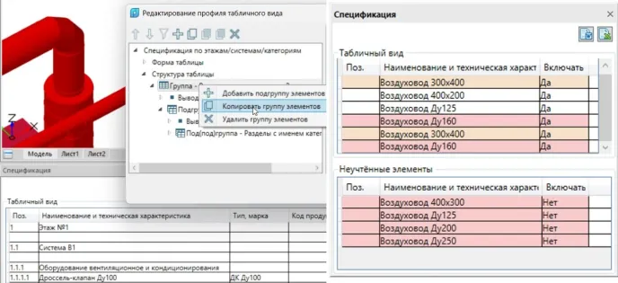В обновлении табличных видов предложены расширенные возможности контроля содержимого с окном «Неучтенные компоненты» и цветовой подсветкой дублей. Реализованы новые операторы сравнения для фильтров, добавлена функция копирования структур табличных видов.