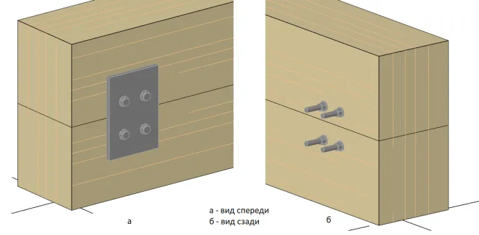 Выполнив эту операцию, можно сделать металлические накладки или использовать болтовые соединения, которые также будут взаимодействовать с древесиной. Все зависит от необходимой степени детализации объекта.