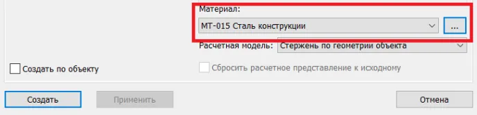 - Класс материала – тип группы, к которой будет принадлежать материал. Назначение класса удобно для последующей фильтрации в библиотеке материалов.