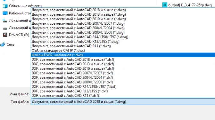 Файл *.dwt-шаблонов создается очень просто. Необходимо создать пустой чертеж, в котором будут настроены или выгружены все линии, и, выбрав Сохранить как... сохранить его под типом файла DWG-шаблона (рис. 22).