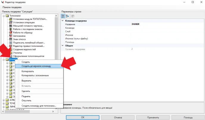 Теперь, найдя УТЗ и просмотрев их обширную библиотеку, если мы обнаружим, что необходимого нам знака нет – мы можем его добавить. Для этого перейдем в Редактор геодерева, нажав правой кнопкой мыши (ПКМ) на закладку навигатора Ситуация и в открывшимся окне выбрав Редактор... (рис. 2).